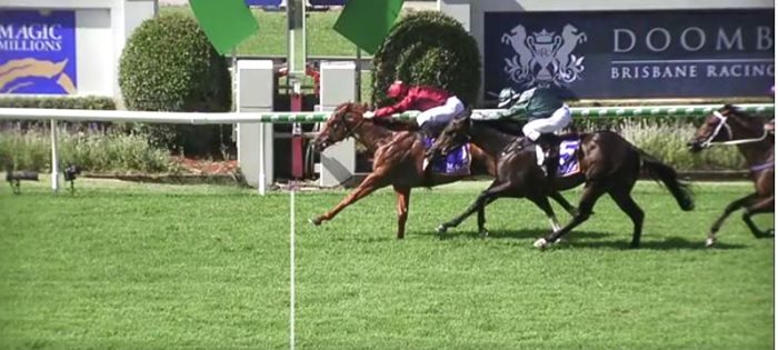Sun City winning the Group 3 B.J McLachlan Stakes over 1200 metres at Doomben in December 2018