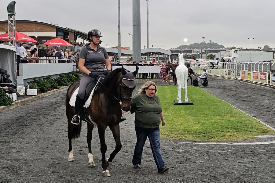 Queensland Off-The-Track Acknowledged Retrainers Amanda Chant and Giuditta Crisci were proud to each show off one of their retrained horses when they led out the fields for both the Pacing and Trotting Championship Finals.