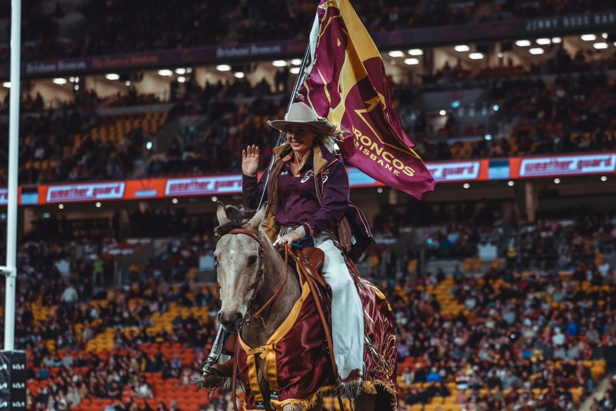 The mascot has become iconic for Brisbane’s loyal supporter base, completing a lap of the field every time the Broncos score a try.