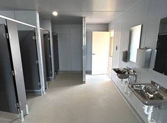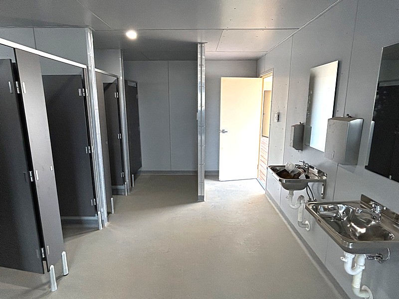 The new single structure includes equal-sized male and female jockey rooms, enclosed showers, and toilet cubicles.