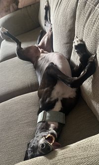 Living in an apartment, the last thing they wanted was a “high energy” pooch that drove them crazy for love, attention and walks and they love him that much, Jess has started volunteer work to rehome greyhounds.