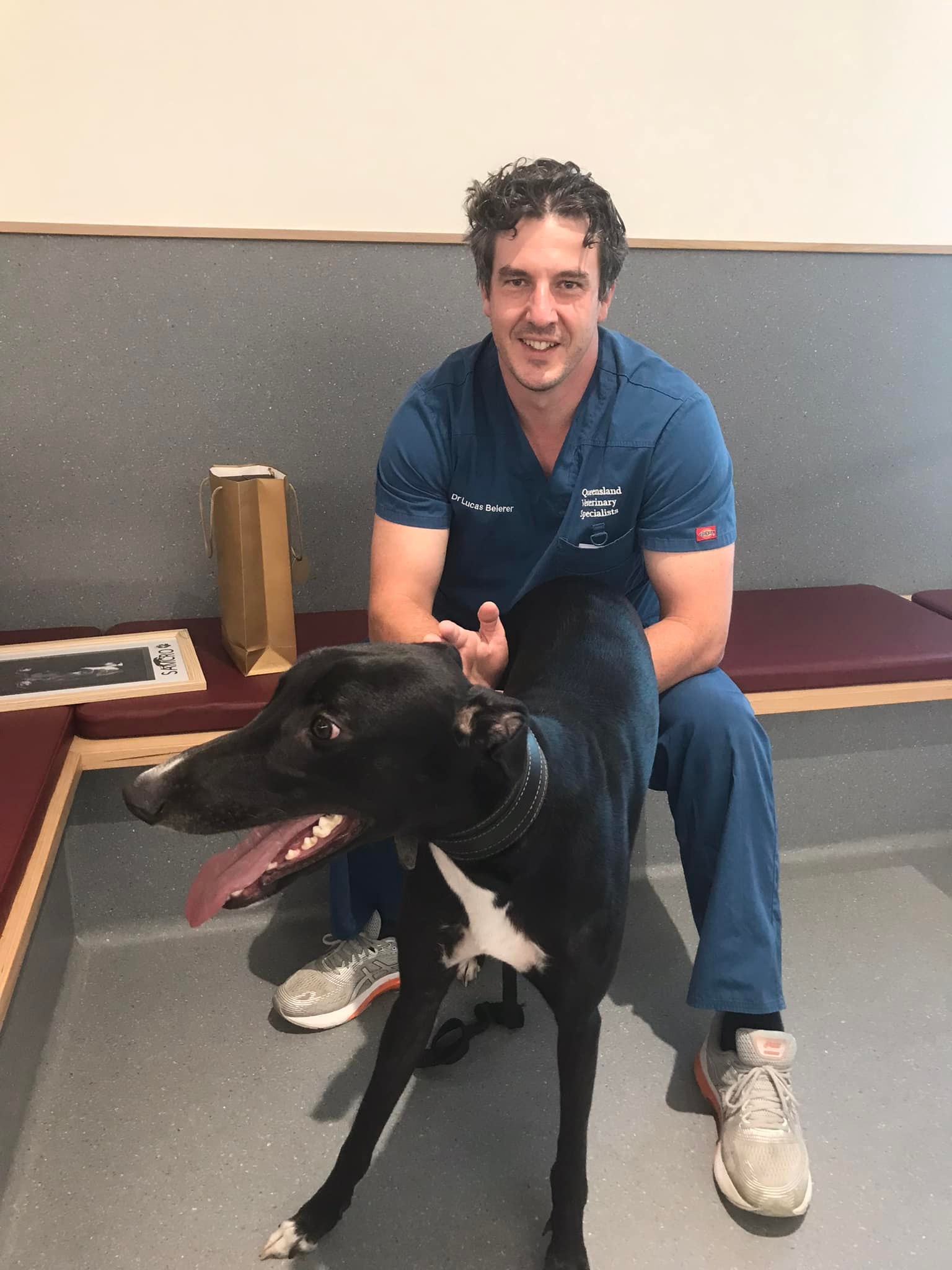 Such has been the success of veterinarians Dr Lucas Breier (pictured) and Dr Jason Beck at Queensland Veterinary Specialists, Samcro was now fit enough to line up behind the boxes at Albion Park, not that he ever would, said Robynne.