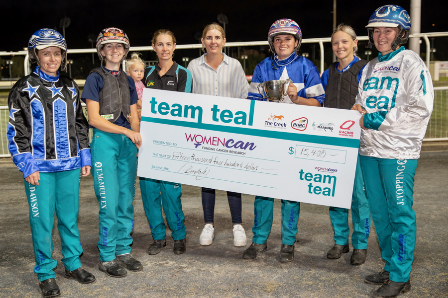 In 2024, Queensland’s female harness racing drivers raised over $15,000 for Team Teal, with more than $150,000 raised over 420 winners across Australasia.