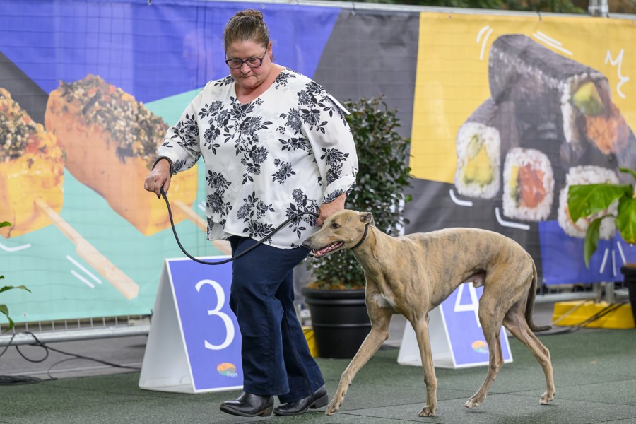 She says there was a warm, friendly and welcoming atmosphere at the Ekka Greyhound Sweepstakes this year with plenty of the general public interacting with the former chasers.